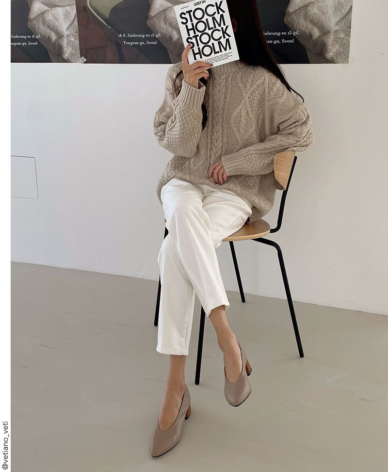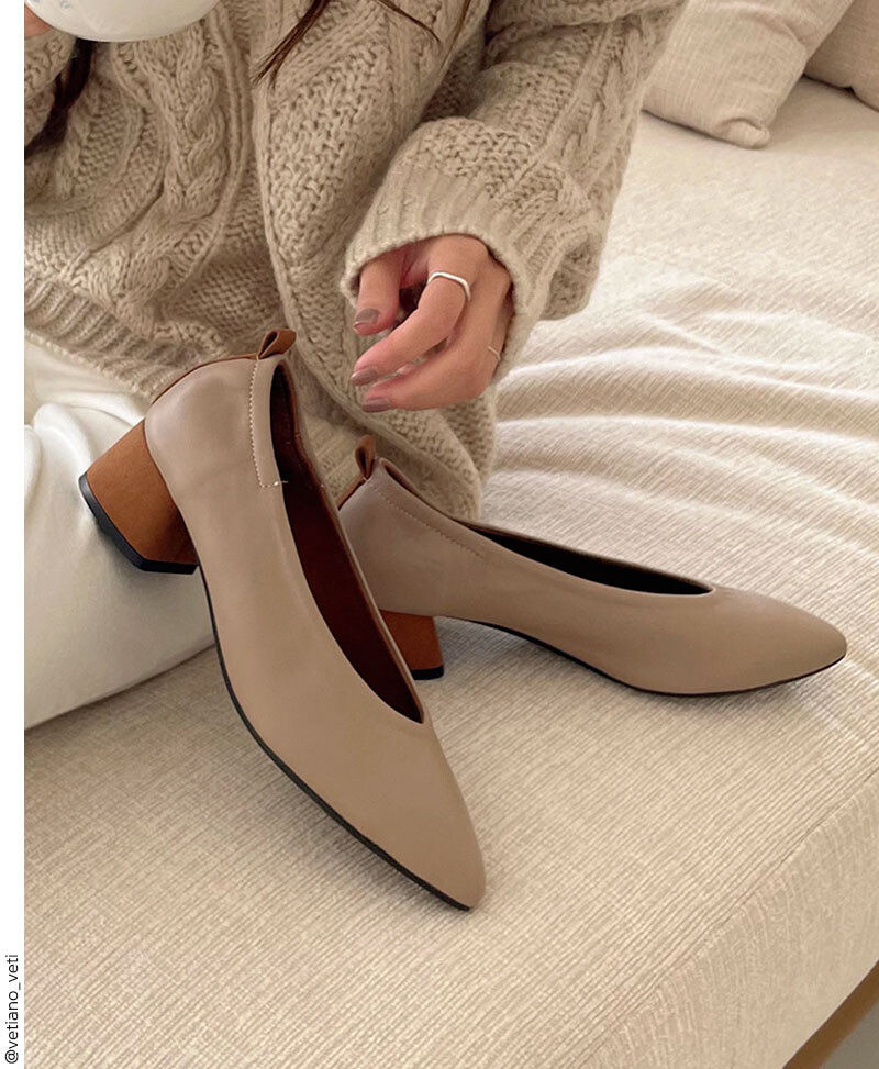 배색 콤비 양가죽 밴딩 펌프스 3C
