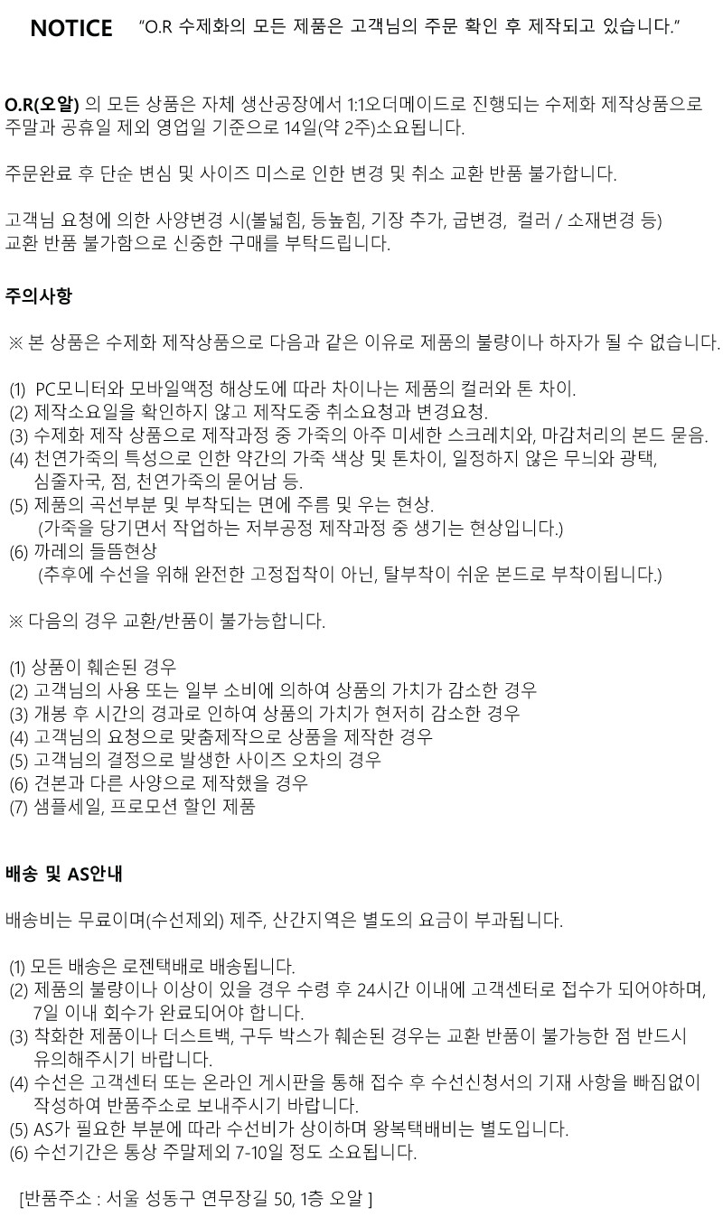 제작기간 수제화맞춤제작으로, 7-14일정도 소요되시는점 참고해주세요. (급하신분들은,주문 투입 후 문의해주세요)