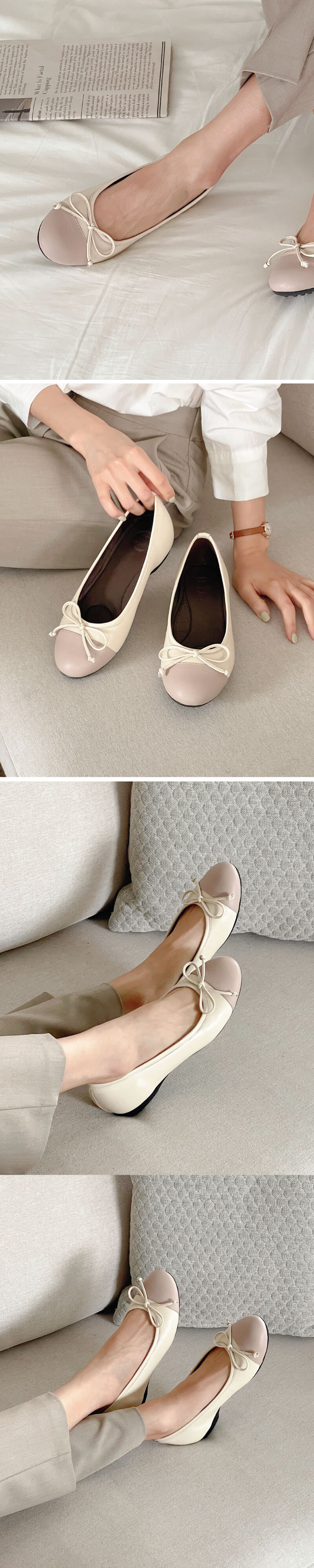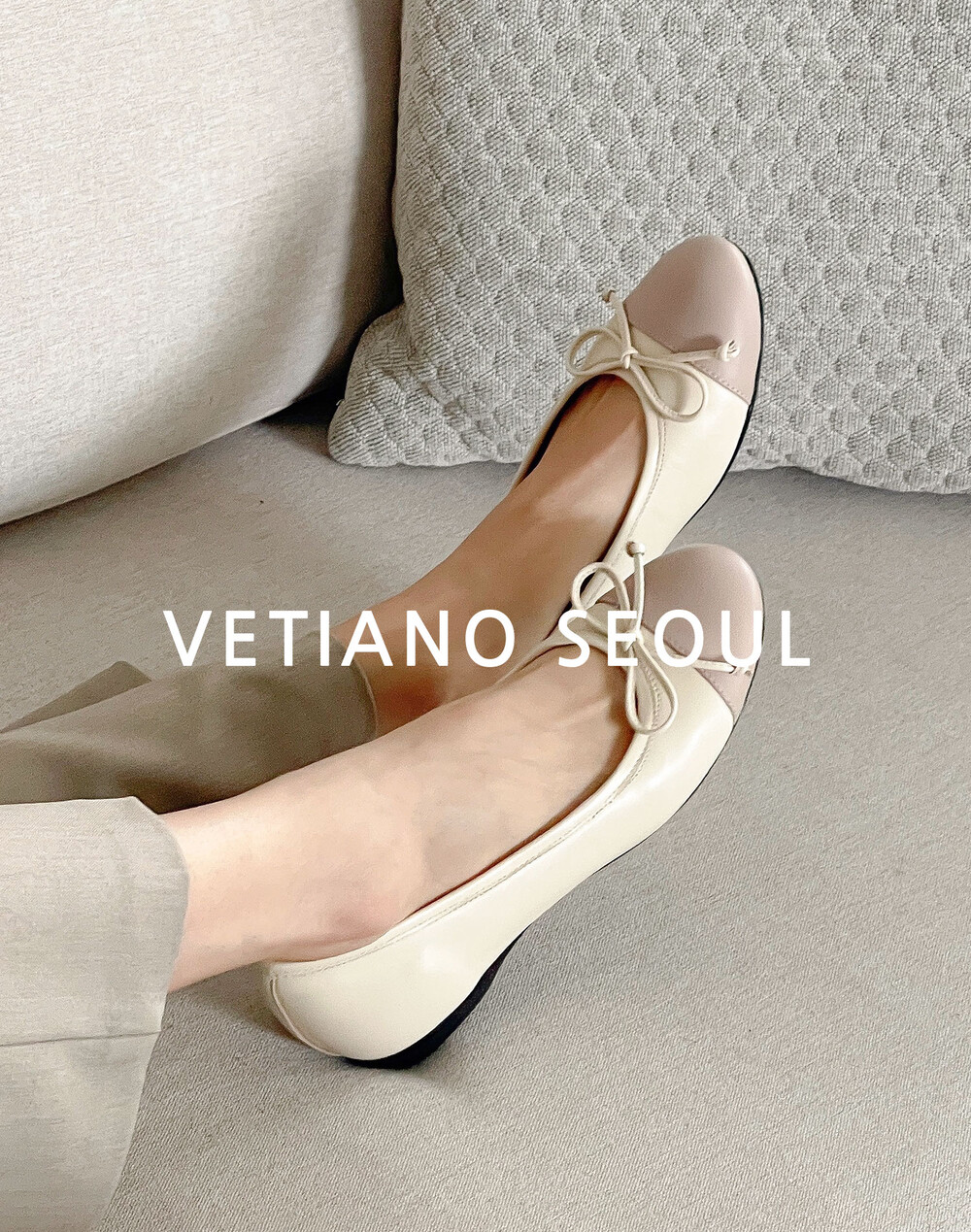 [VETIANO 베티아노] 투톤 리본 _ 양가죽 라운드 플랫