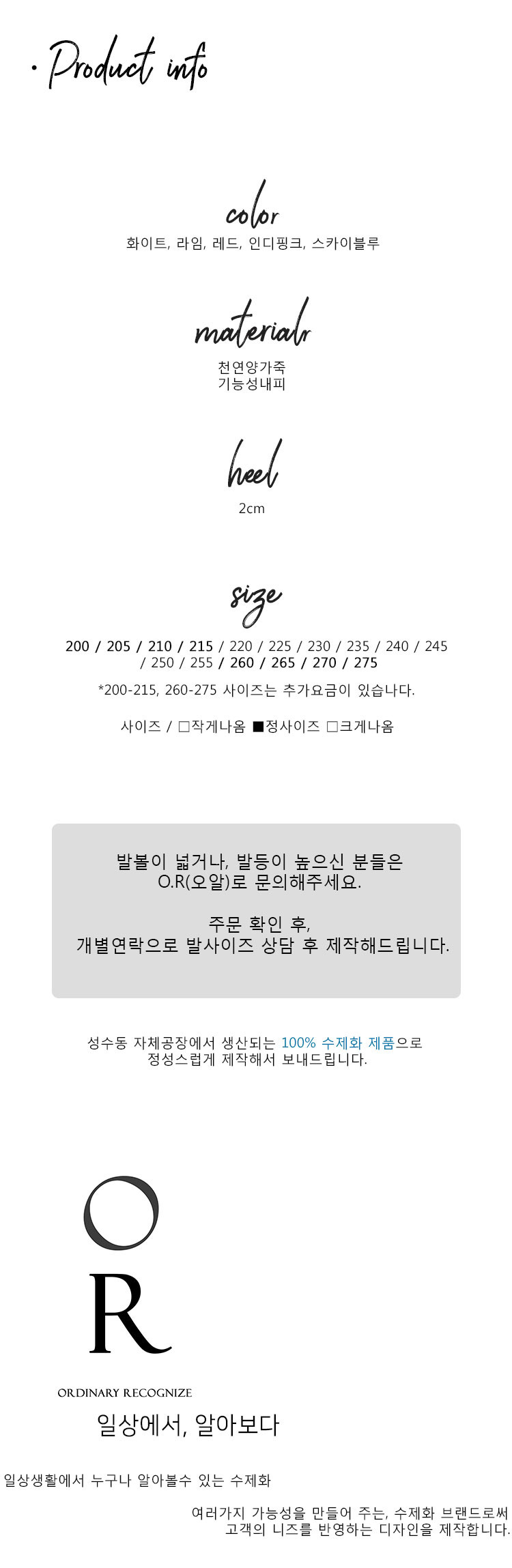 ※ 본 상품은 수제화 제작상품으로 다음과 같은 이유로 제품의 불량이나 하자가 될 수 없습니다.