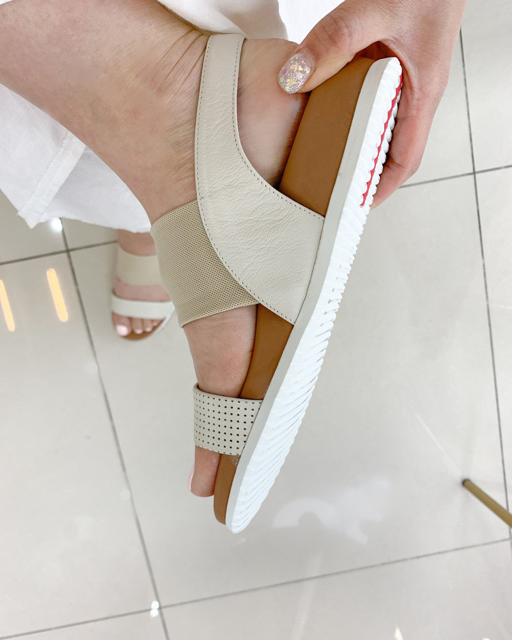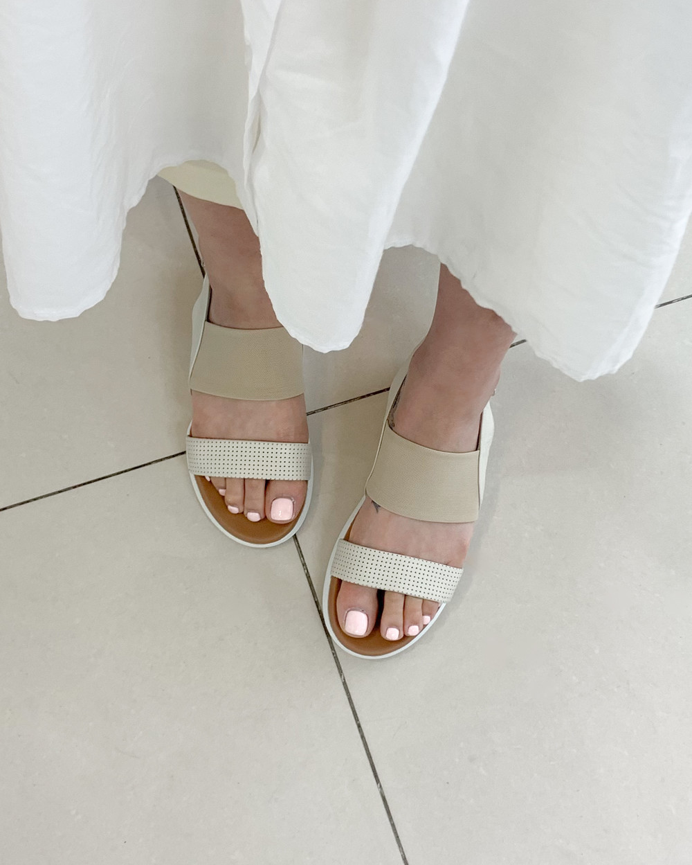 에크루스 발등 스판 펀칭 샌들 / 베이지