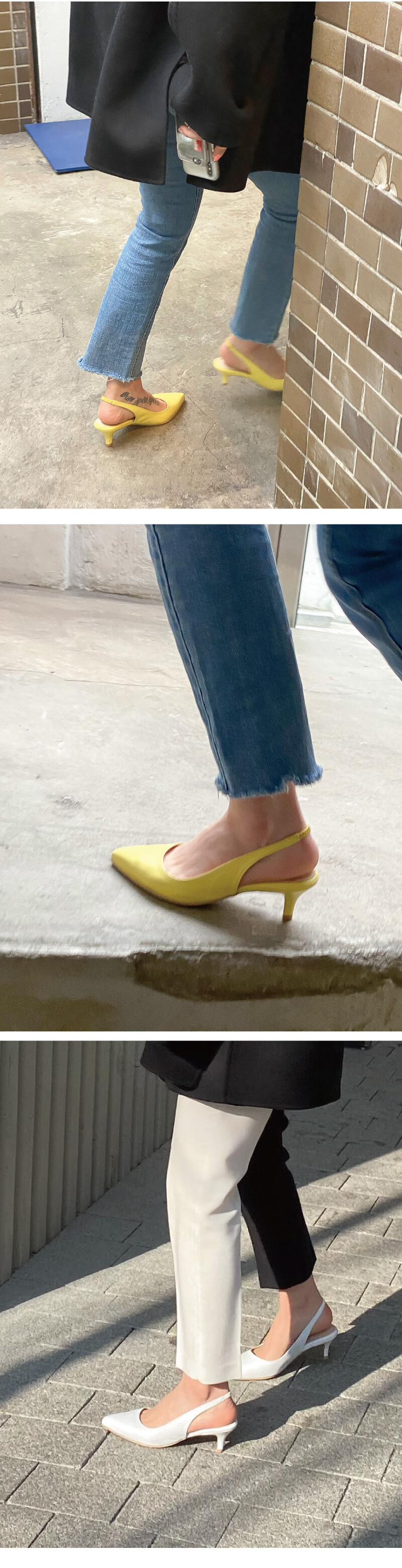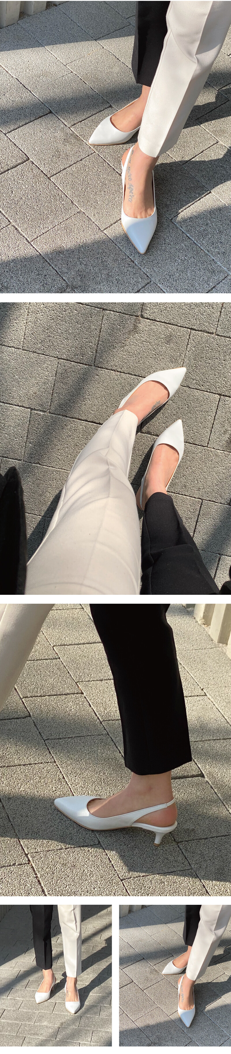 COMMENT 포인티드 되는 앞코 모양으로 세련되지만 5cm 키튼힐 높이로 편하게~ 신으실 수 있는 펌프스&슬링백을 소개해드려요! 자연스러운 광택감과, 부드러우면서도 견고성을 가지고 있는 소재로 비교적 가죽의 입자가 보이지 않아 매끈하게 보여지는 천연소가죽으로 제작되었습니다. 날카롭고 뾰족한 앞코모양으로, 라스트(코모양)이 주는 느낌 자체가 세련된 스타일의 제품입니다. 기본 펌프스의 펌프스로, 앞코모양이 주는 세련됨이 멋스러운 디자인입니다. 슬링백스타일은 군더더기 없이 깔끔하게 이어져 뒤 밴딩처리로 신축성 있게 신어주실 수 있습니다. 높지 않고 적당한 높이의 5센티의 굽으로 편하게 즐겨신으실 펌프스&슬링백 입니다. 연질처리한 아웃솔로, 쉽게 닳지 않고 미끄럼방지에 뛰어납니다.