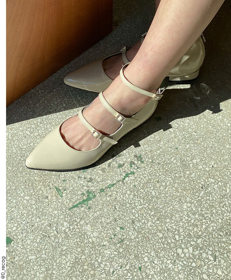 큐빅장식이 포인트로 들어간 메리제인 스타일의 플랫슈즈로 어디에나 쉽게 포인트로 신어주기 좋은 플랫슈즈입니다.