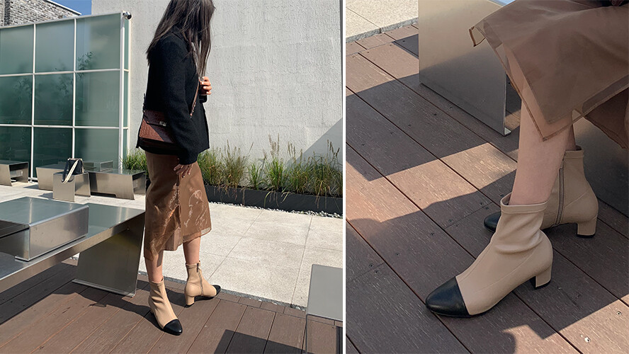 스퀘어_가브리엘 투톤 스판 롱부츠