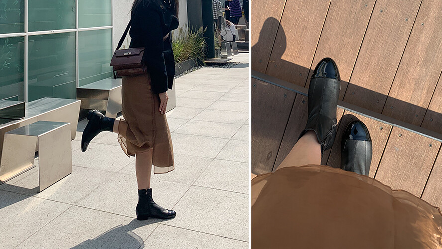 아몬드코_가브리엘 투톤 스판 롱부츠
