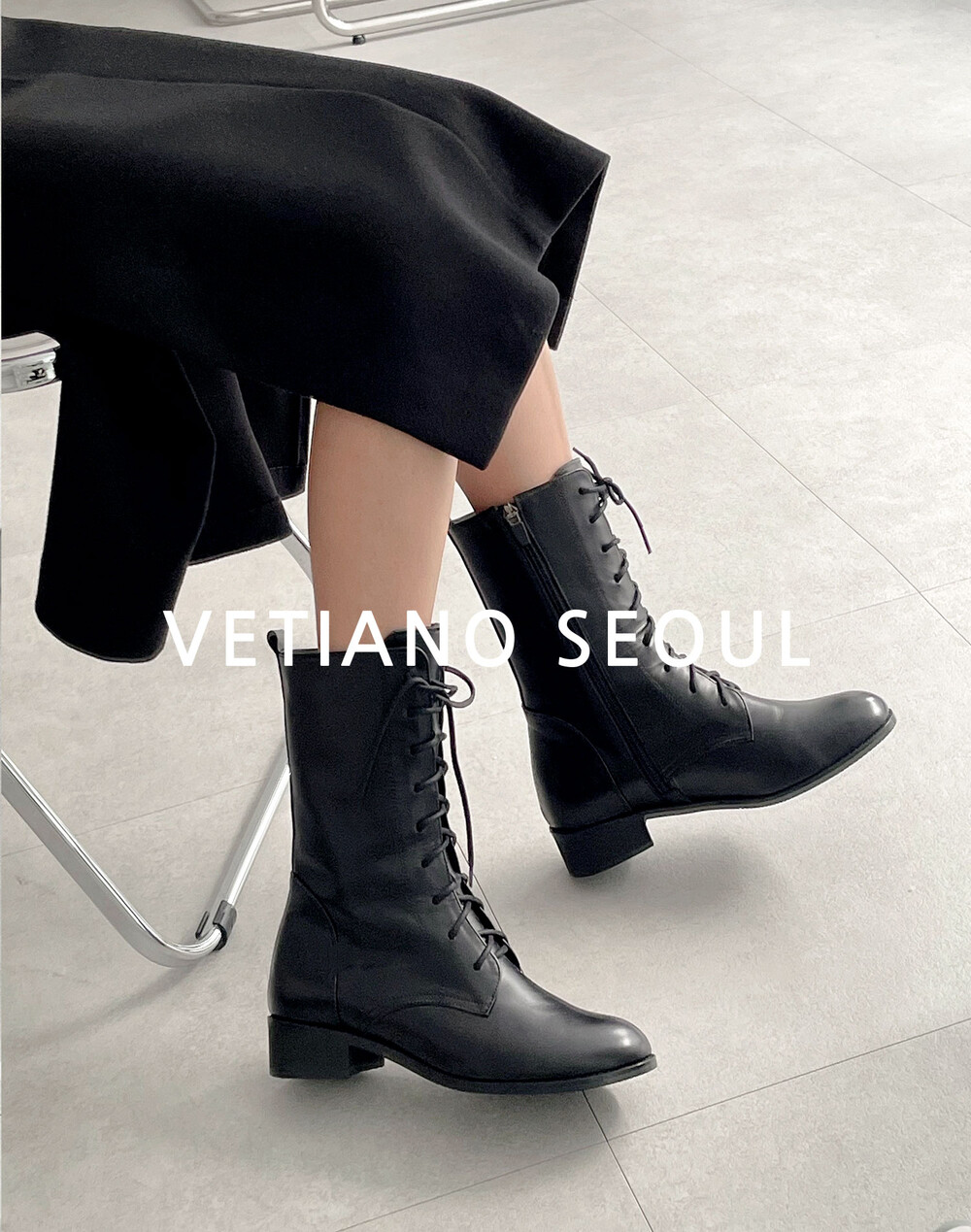 [VETIANO 베티아노] 슬림 베이직 레이스업 부츠 / Slim basic lace-up boots