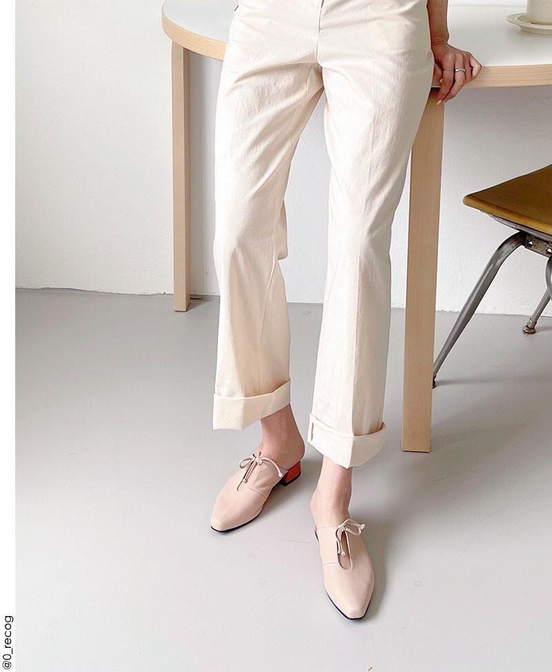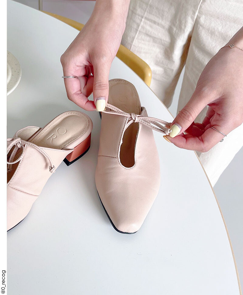 뾰족 스퀘어 코에 리본으로 포인트를 주어 시원하게 신어줄 수 있는 뮬 입니다.