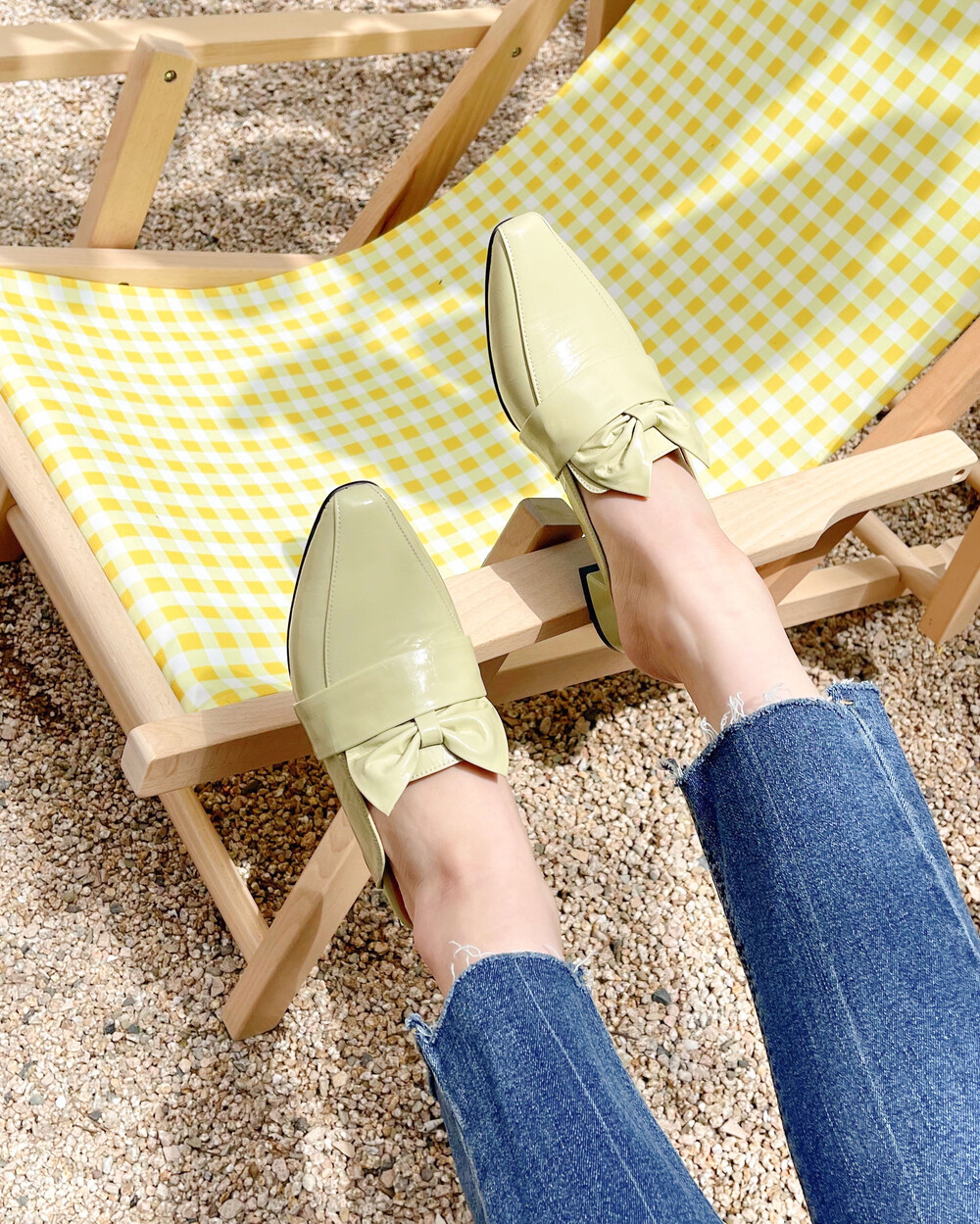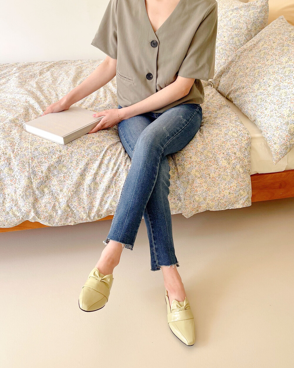 쭈글이 애나멜 가죽과 리본으로 포인트를 준 블로퍼입니다.