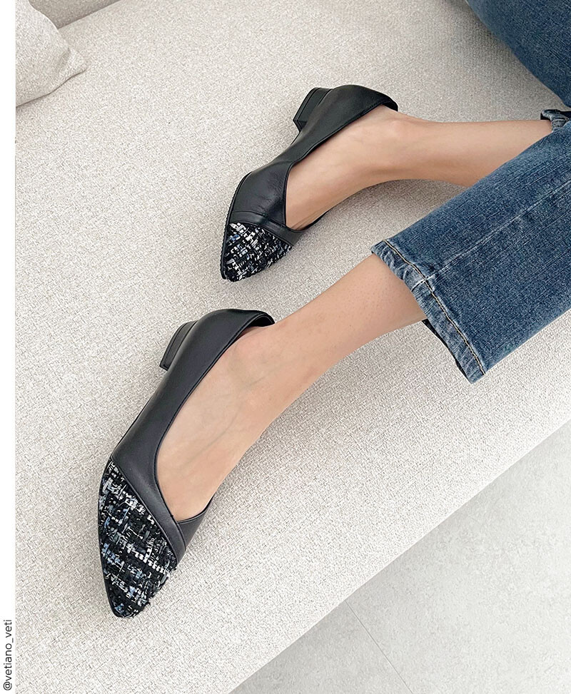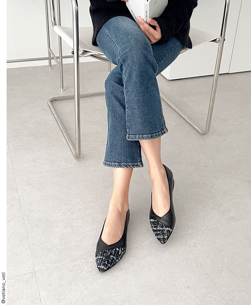 가비 트위드 콤비라인 플랫