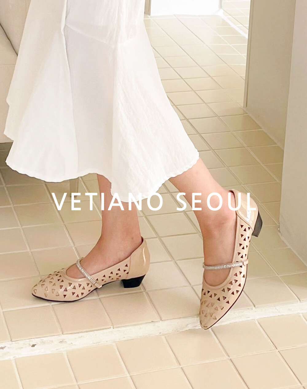 [VETIANO 베티아노] 제니 펀칭 큐빅 스트랩 플랫 3C Jenny Punching Cubic Strap Flat 3C