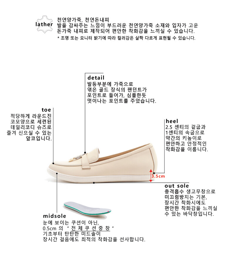COMMENT 타입이 다른 양가죽소재의 은은한 콤비로 멋스럽게 제작된 슬립온 스타일의 스니커즈입니다. 발을 짧게 덮어주어 발이 작아보이는 효과와 캐주얼, 정장 어디에나 잘 신게되는 스타일이랍니다. 3.5센티의 굽높이로 편하게 즐겨 신으실 수 있으며, 슬림한 고무창의 아웃솔로 여성스러움이 묻어나는 스니커즈랍니다. 적당히 라운드진 앞코모양이 매력적인 아이템이 되실 수 있어요. 사이즈는 정사이즈로 추천해드리며, 두사이즈를 착화하시는 분들껜 작은사이즈로 권해드립니다.