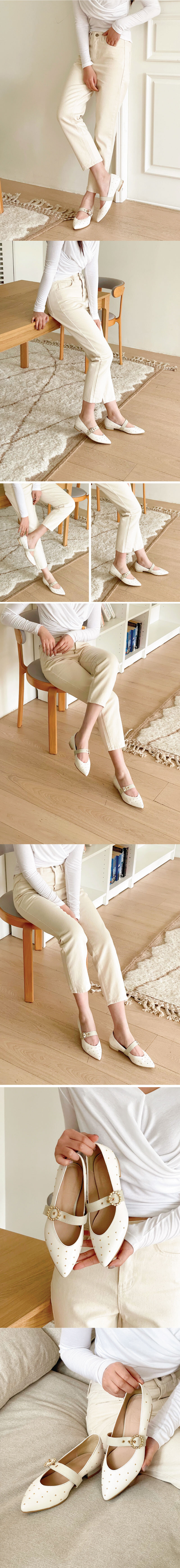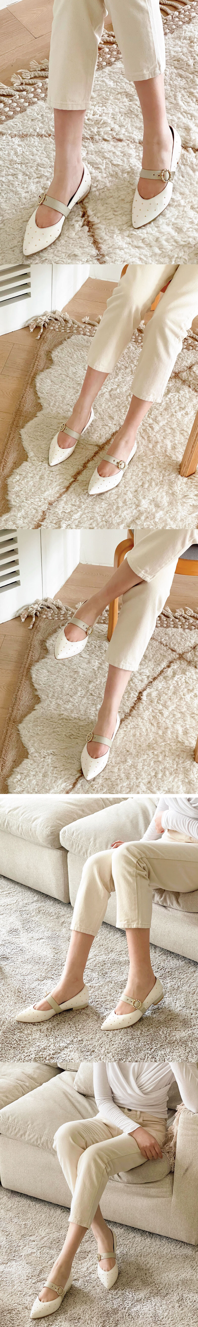 [O.R 오알] 플라워 펄 투톤 스트랩 플랫 / flower pearl two-tone strap flat