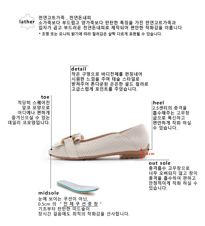 COMMENT 소가죽보다 부드럽고 양가죽보단 견고한 천연 고트가죽으로 제작된 로퍼입니다. 내피도 돈내피로 제작되어 편안한 착화감을 느끼실 수 있습니다. 묵찍한 골드장식이 포인트가 되는 로퍼입니다. 장식 아래는 태슬 스타일로 받쳐주어 톤다운된 은은한 골드 컬러로 고급스럽게 포인트가 되었습니다. 바디전체에 작은펀칭내주어 시원한 느낌을 주며, 적당히 스퀘어진 앞코모양으로 어디에나 편하게 즐겨신으실 수 있는 데일리슈즈입니다.