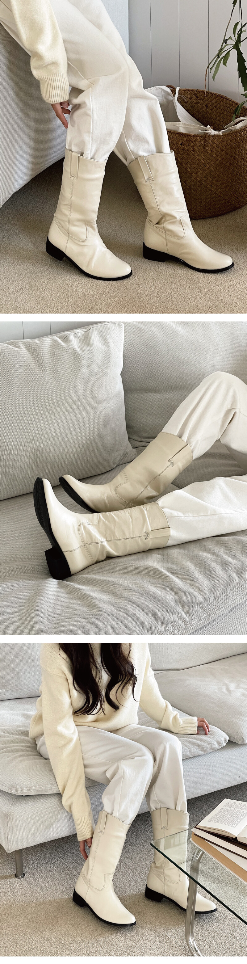 [VETIANO 베티아노] 보우 화이트 미들 부츠 / Bow white middle boots