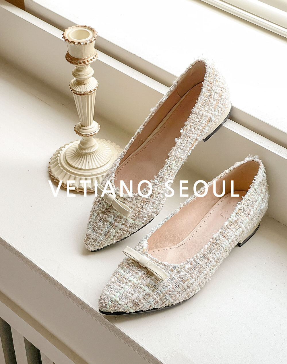 [VETIANO 베티아노] 스페이스 트위드 리본 플랫 space tweed ribbon flats