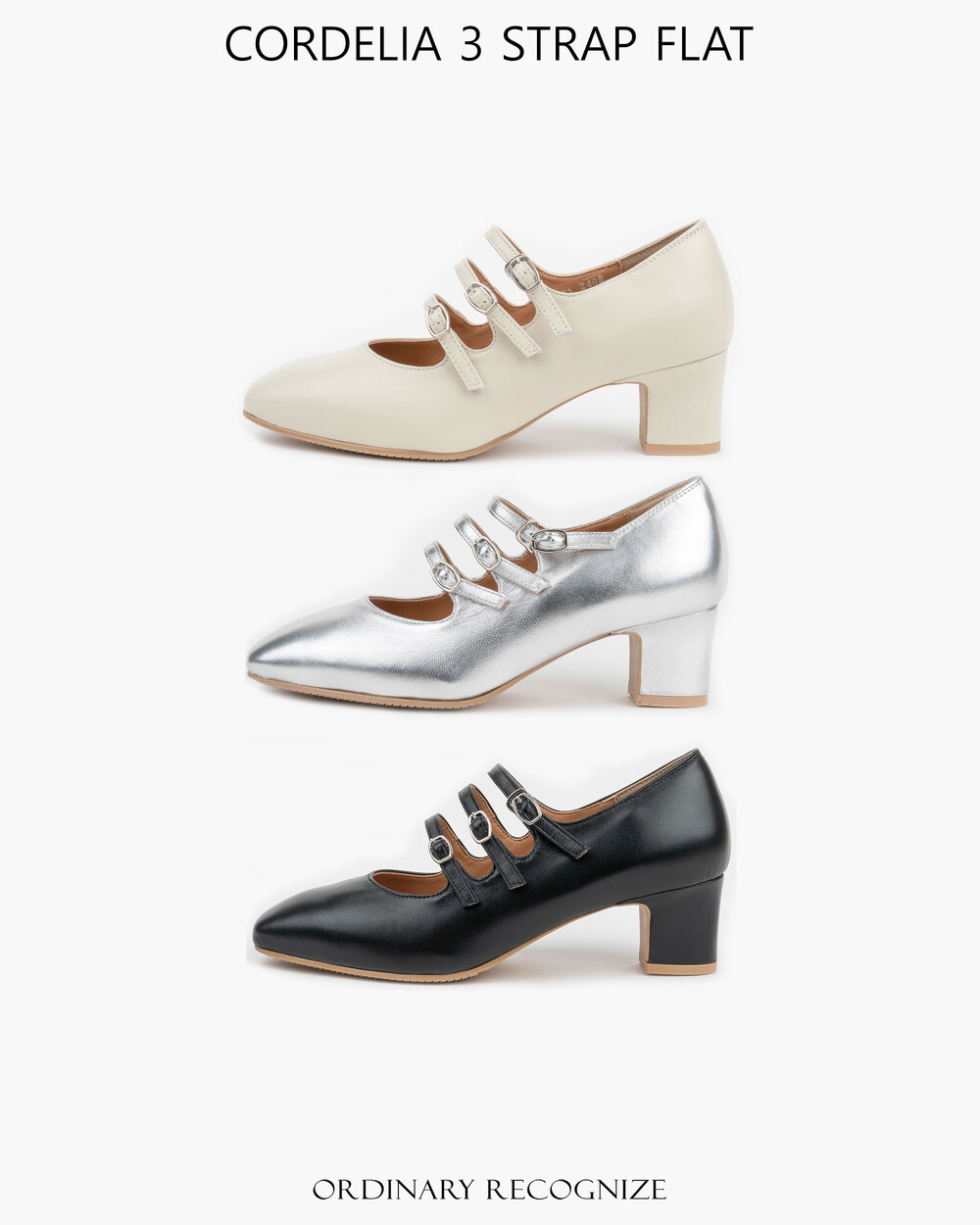 COMMENT 기본 스타일에,오직 세줄의 스트랩으로 포인트를 준 슈즈입니다. 스타일링에 따라 중성적이거나 여성미가 물씬 느껴지는 포멀한 슈즈입니다. 가죽의 입자가 곱고, 착화감이 부드러운 천연 양가죽 으로 제작되어 발을 편하게 감싸줍니다. 슬림하고 얄쌍하게 빠진 스퀘어진 앞코모양으로 세련된 느낌을 줍니다. 발등부분에 올라간 세줄의 스트랩이 여성스러운 포인트가 되는 펌프스입니다. *앞 두줄은 고정형, 뒤에 한줄만 고리형태 입니다. 5센티의 넓으면서도 여성스럽게 떨어지는 굽라인으로 편안하고 안정적인 착화감을 선사합니다. 연질처리된 일반창으로 제작된 아웃솔로 쉽게 닳지 않으며 미끄럼방지에 뛰어납니다.