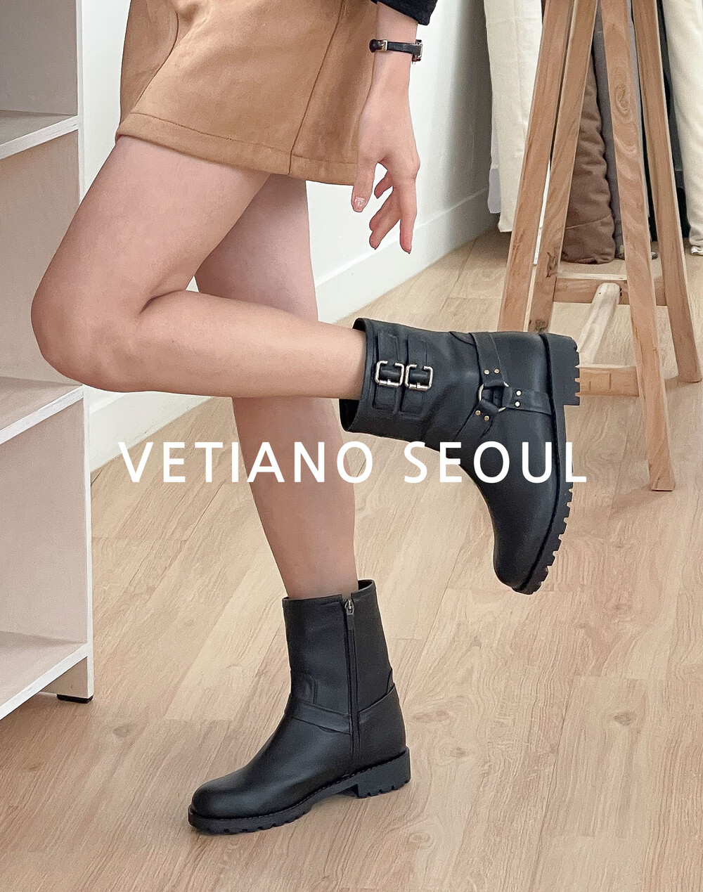 [VETIANO 베티아노] 에스메 투버클 앵클부츠 Black / Esme Two Buckle Ankle Boots Black