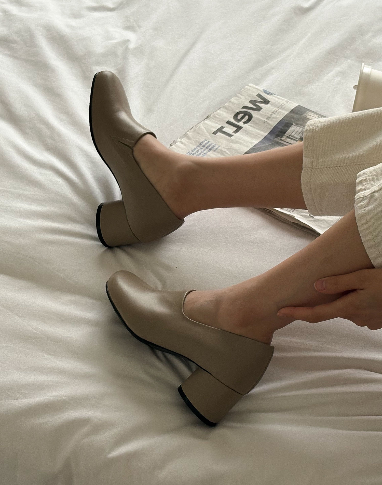 COMMENT 고밀도의 천연 소가죽이 발의 곡선을 따라 부드럽게 감기며, 시간이 지날수록 은은한 윤기가 더해져 자신만의 깊은 질감으로 완성됩니다. 안감에는 통기성과 흡습성이 뛰어난 천연 돈내피를 더해 하루 종일 가볍고 편안한 착화감을 유지합니다. 살짝 뭉뚱한 커브라인 토 디자인은 발볼을 부드럽게 감싸며, 단정하면서도 따뜻한 인상을 만들어줍니다. 사이드 안쪽에는 밴딩 처리를 더해 신고 벗기 편리하면서도 라인이 흐트러지지 않게 안정적으로 잡아줍니다. 5cm의 둥근 블록굽은 흔들림 없이 균형을 지탱하고, 굽 전체를 동일한 가죽으로 감싸 매끈하고 일체감 있는 실루엣을 완성했습니다. 연질 처리된 아웃솔을 사용하여 쉽게 닳지 않고 내구성이 뛰어나며, 미끄럼 방지 기능까지 갖춰 안정적인 착화가 가능합니다.