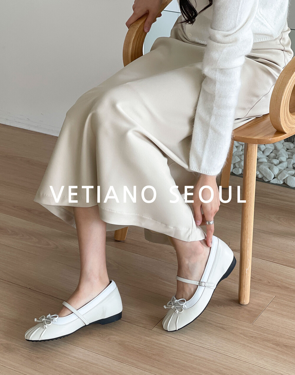 [VETIANO 베티아노] 리본드 더블 메리제인 _ 라운드 양가죽 플랫 / Ribboned Double Mary Jane _ Round Sheepskin Flat