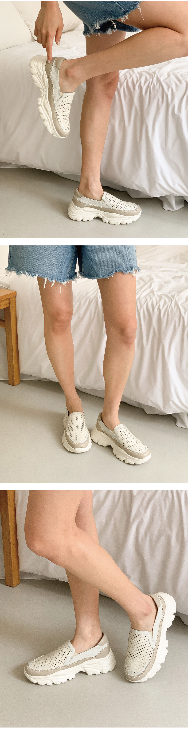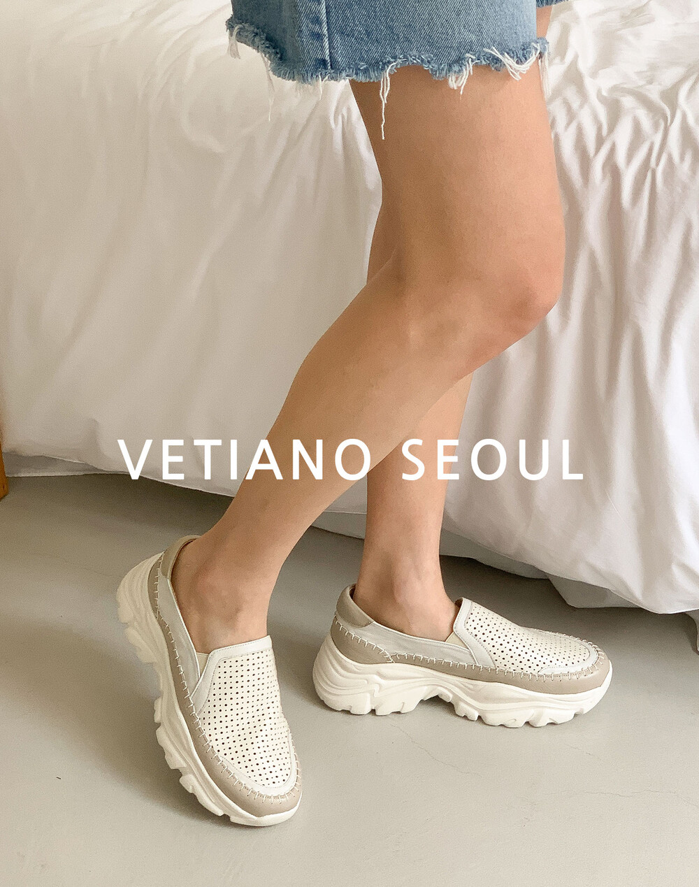 [VETIANO 베티아노] 에어펀칭 키높이 어글리 스니커즈 슬립온 / Air punching height increase ugly sneakers slip on