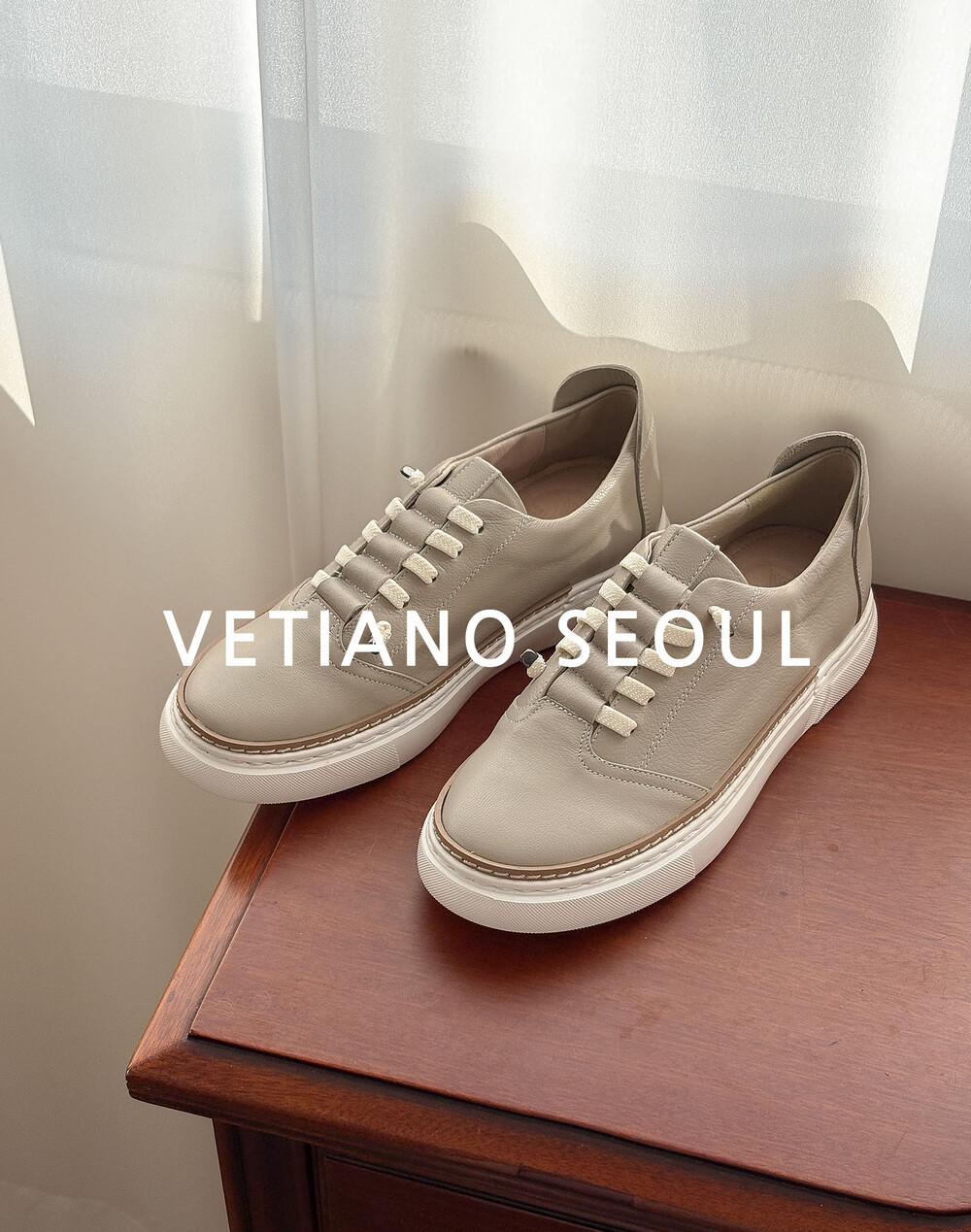 COMMENT 전체적으로 과하지 않은 균형감과 소재의 질감으로 완성도를 끌어올린 데일리 스니커즈입니다. 군더더기 없는 실루엣 위에 절제된 디테일을 더해, 일상 속 다양한 스타일에 자연스럽게 스며드는 것이 특징입니다. 겉가죽은 고트가죽을 사용해 특유의 은은한 결감과 함께 가볍고 유연한 착화감을 제공합니다. 처음 신는 순간부터 발을 부드럽게 감싸주며, 활동이 많은 날에도 부담을 최소화합니다. 내피는 돈내피로 마감해 통기성과 흡습성을 확보하여 장시간 착용 시에도 쾌적함을 유지할 수 있도록 설계했습니다. 앞코는 둥글게 떨어지는 라운드 토 쉐입으로 제작되어 발가락을 자연스럽게 감싸주며, 전체적인 인상을 부드럽고 편안하게 정리합니다. 과하게 캐주얼하지도, 지나치게 포멀하지도 않은 중간 지점의 형태로 다양한 스타일에 유연하게 어울립니다. 디자인은 기본적인 스니커즈 구조를 바탕으로, 끈 부분에 볼륨감 있는 디테일을 더해 단조로움을 덜어냈습니다. 일반적인 슈레이스와 달리 입체적으로 구성된 끈 디테일이 시선을 자연스럽게 끌면서도, 전체적인 분위기를 해치지 않고 조화롭게 어우러집니다. 또한 아웃솔 라인을 따라 더해진 스티치 디테일은 안정감을 시각적으로 보완하며 완성도를 높여줍니다. 굽 높이는 3.5cm로 설정되어 자연스럽게 키 높이 보정을 해주면서도, 일상에서 부담 없이 착용 가능한 안정적인 높이를 유지합니다. 바닥은 쿠셔닝이 느껴지는 구조로 설계되어 장시간 보행 시에도 피로도를 덜어주며, 발 전체를 균형 있게 지지해줍니다. 스타일링 측면에서는 슬랙스와 매치하면 단정한 캐주얼 룩으로, 데님과는 보다 편안한 데일리 룩으로 자연스럽게 이어집니다. 원피스나 스커트와 함께하면 과하지 않은 믹스 매치 스타일을 완성할 수 있어 활용도가 높습니다. 컬러 역시 부드러운 뉴트럴 톤으로 구성되어 계절에 크게 구애받지 않고 다양한 코디에 안정적으로 어우러집니다. 전반적으로 이 제품은 ‘편안함’을 기본으로 두면서도, 단순한 기본 스니커즈에서 벗어나 디테일과 소재로 차별화를 준 모델입니다. 눈에 띄는 과장 없이, 신을수록 자연스럽게 만족도가 쌓이는 데일리 슈즈를 찾는 경우에 적합한 선택입니다.