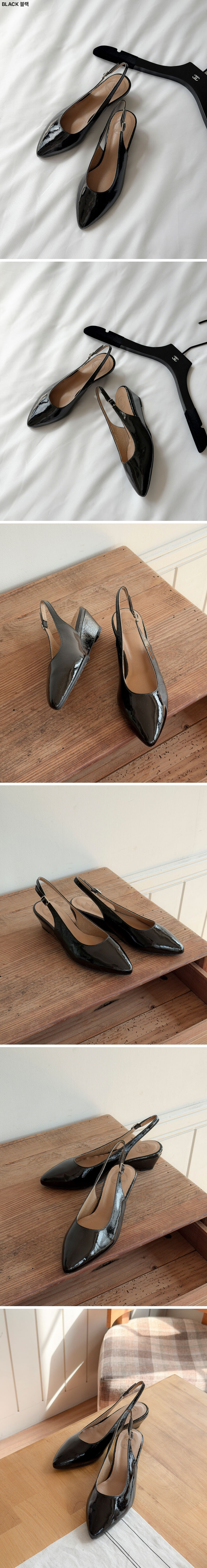 절제된 실루엣과 소재의 질감으로 완성도를 높인 슬링백 슈즈입니다. 겉가죽은 은은한 크랙감이 느껴지는 소가죽 애나멜을 사용해 과하지 않은 광택과 함께 세련된 분위기를 더하며, 내피는 돈내피로 마감해 통기성과 착용 시의 쾌적함을 고려했습니다. 앞코는 지나치게 날렵하지 않은 포인티드 쉐입으로 제작되어 발을 안정감 있게 잡아주면서도 단정한 인상을 유지합니다. 약 4cm 높이의 웨지굽은 자연스러운 키 높이 보정과 함께 하중을 분산시켜 장시간 착용 시에도 부담을 줄여주며, 슬링백 구조는 발을 부드럽게 감싸주어 안정적인 착화감을 제공합니다. 군더더기 없는 깔끔한 디자인으로 다양한 스타일에 자연스럽게 어우러지는 균형 잡힌 아이템입니다.