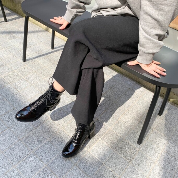 애나멜로 포인트를 주어 5cm로 제작된 인기 많았던 레이스업 부츠입니다.
