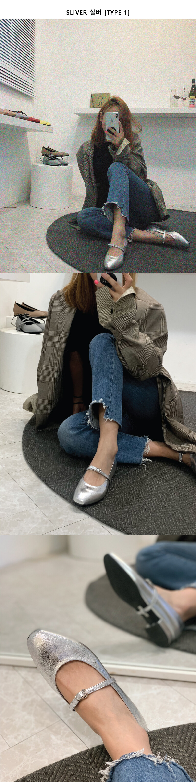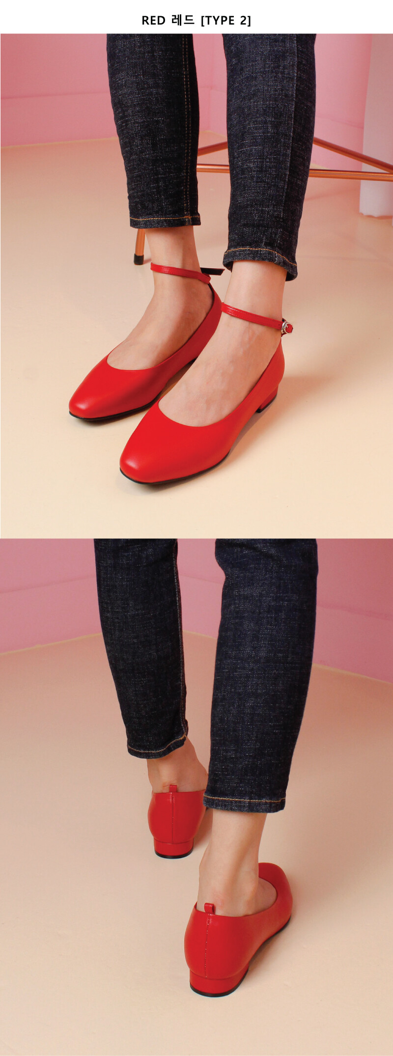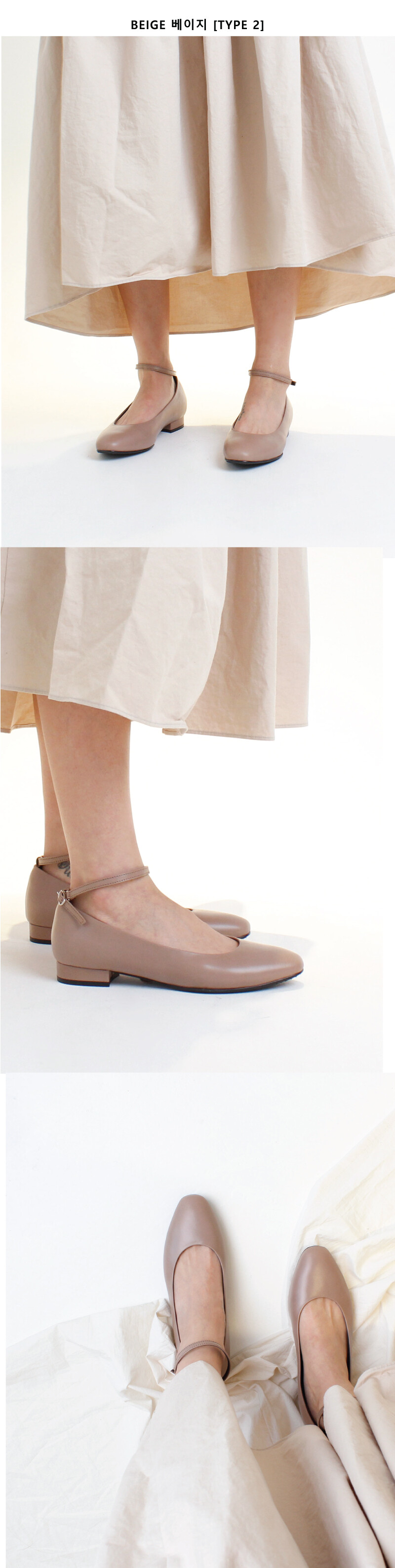 COMMENT 자연스러운 광택감과, 부드러우면서도 견고성을 가지고 있는 소재로 비교적 가죽의 입자가 보이지 않아 매끈하게 보여지는 천연소가죽으로 제작되었습니다.적당히 스퀘어진 모양의 앞코로 데일리룩에 찰떡인 슈즈입니다. 쉐입라인은 미싱선 없이 깔끔한 처리로 마무리했습니다. 발등과 발목 스트랩 교체가 가능함으로써 여러가지의 매력을 느낄 수 있는 디자인으로, 나만의 스타일로 스타일링이 가능한 플랫슈즈입니다.2cm의 넓은 사각굽모양으로 편안하고 안정적인 착화감을 느끼실 수 있습니다. 일반창을 연질처리한 아웃솔로, 쉽게 닳지 않고 미끄럼방지에 뛰어납니다.