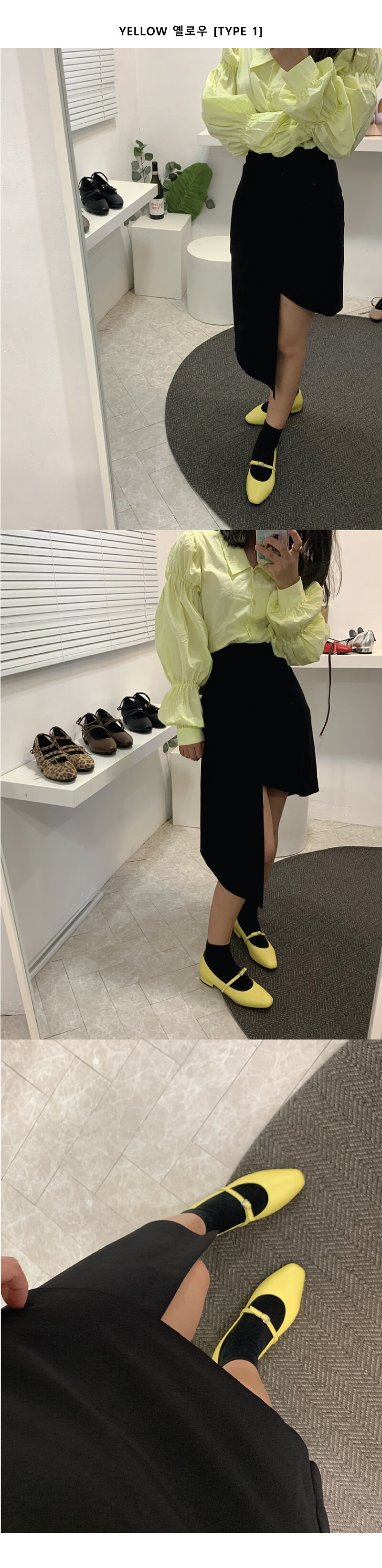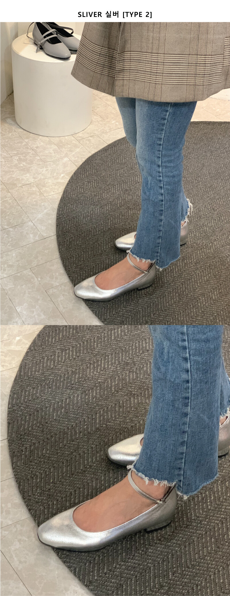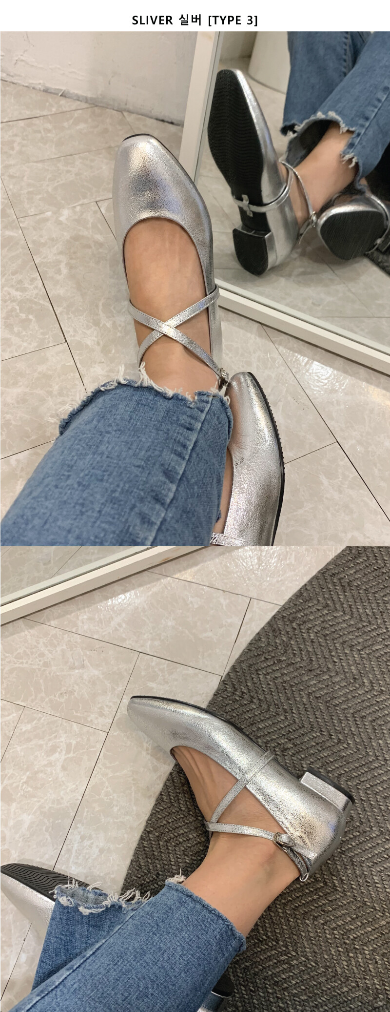 COMMENT 자연스러운 광택감과, 부드러우면서도 견고성을 가지고 있는 소재로 비교적 가죽의 입자가 보이지 않아 매끈하게 보여지는 천연소가죽으로 제작되었습니다.적당히 스퀘어진 모양의 앞코로 데일리룩에 찰떡인 슈즈입니다. 쉐입라인은 미싱선 없이 깔끔한 처리로 마무리했습니다. 발등과 발목 스트랩 교체가 가능함으로써 여러가지의 매력을 느낄 수 있는 디자인으로, 나만의 스타일로 스타일링이 가능한 플랫슈즈입니다.2cm의 넓은 사각굽모양으로 편안하고 안정적인 착화감을 느끼실 수 있습니다. 일반창을 연질처리한 아웃솔로, 쉽게 닳지 않고 미끄럼방지에 뛰어납니다.